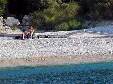 PLAŽA: 80 m, prodnata, delno betonska;