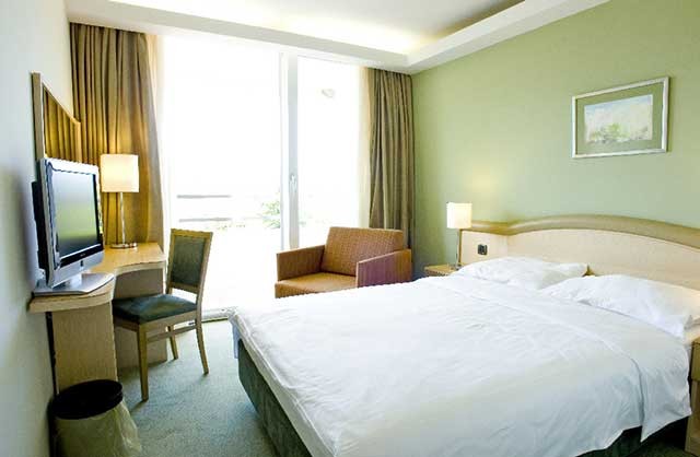 OPIS: glavna stavba, depandansa, restavracija, aperitiv bar, TV soba, frizerski salon, prodajalna spominkov in časopisov, terasa s plesno glasbo;