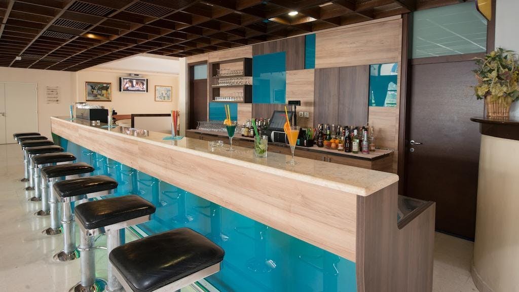 OPIS: recepcija z aperitiv barom, slaščičarna, picerija, disko-bar, pivnica, frizerski salon, splošna ambulanta, trgovina s spominki, modni butik, internetni kotiček, 4 kongresne dvorane, vsi hotelski prostori so klimatizirani in pokriti z WiFI internet signalom, 200 zunanjih parkirnih mest in 50 v hotelski garaži, organizirani izleti.