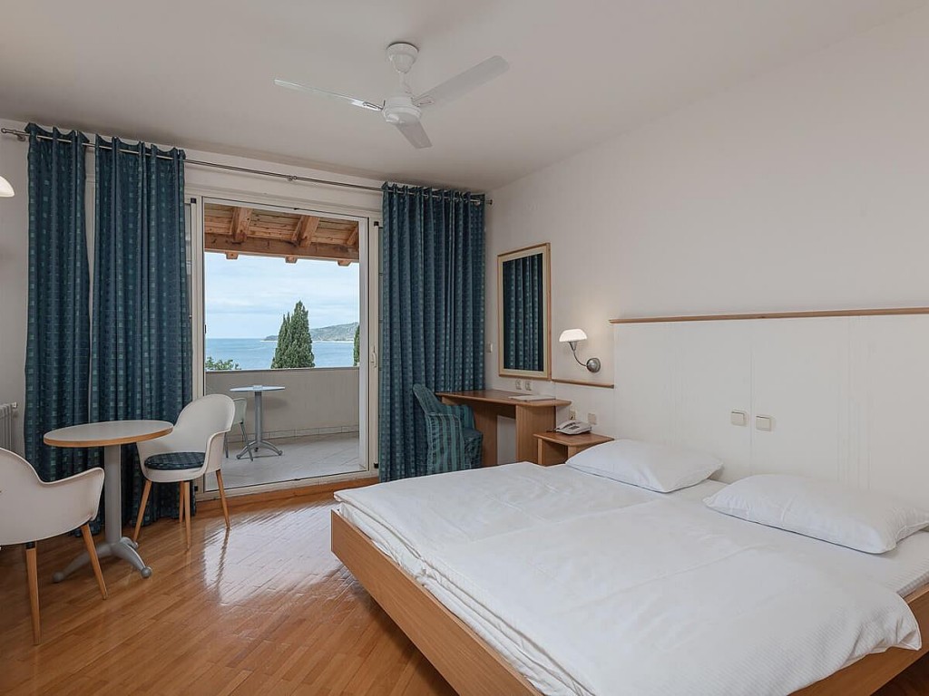 NASTANITEV: APARTMAJI:1/2 studio APP: dnevno-spalni prostor z zakonsko posteljo ali dvema ločenima posteljama, manjša kuhinjska niša, kopalnica (kad ali prha/wc, sušilec za lase) SAT-TV, mini bar, telefon, terasa; 1/2+1 in 1/2+2 APP: spalnica z zakonsko posteljo, raztegljiv kavč, dnevni prostor, kuhinjska niša, kopalnica (kad ali prha/wc, sušilec za lase) SAT-TV, mini bar, telefon, terasa;